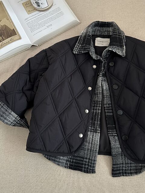 重ね着風 ダウンコットンキルティングジャケット